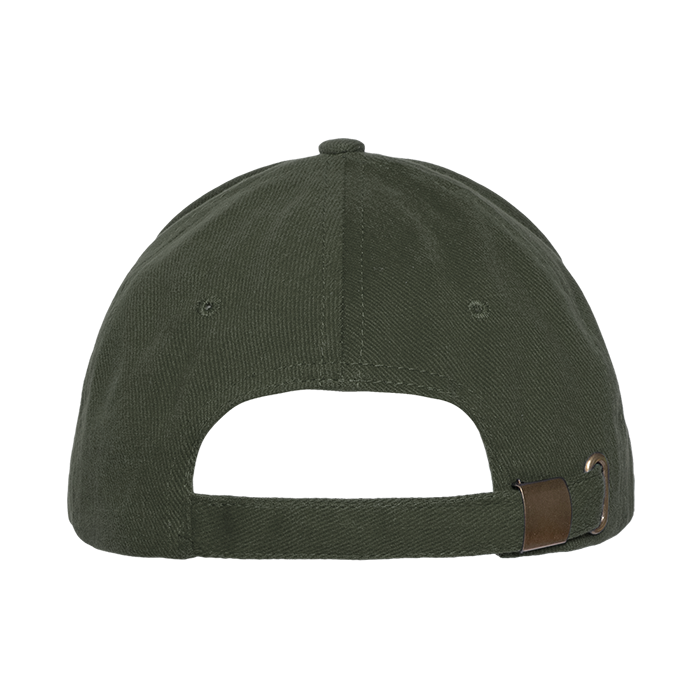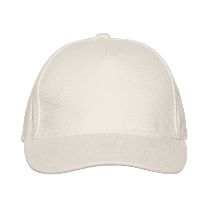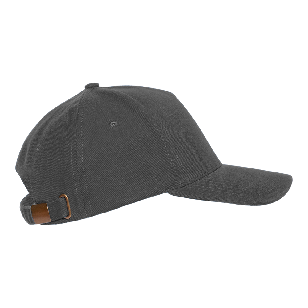 Бейсболка-пятиклинка без лобового шва с изогнутым жестким козырьком. Посадка регулируется ремешком на металлической застежке.