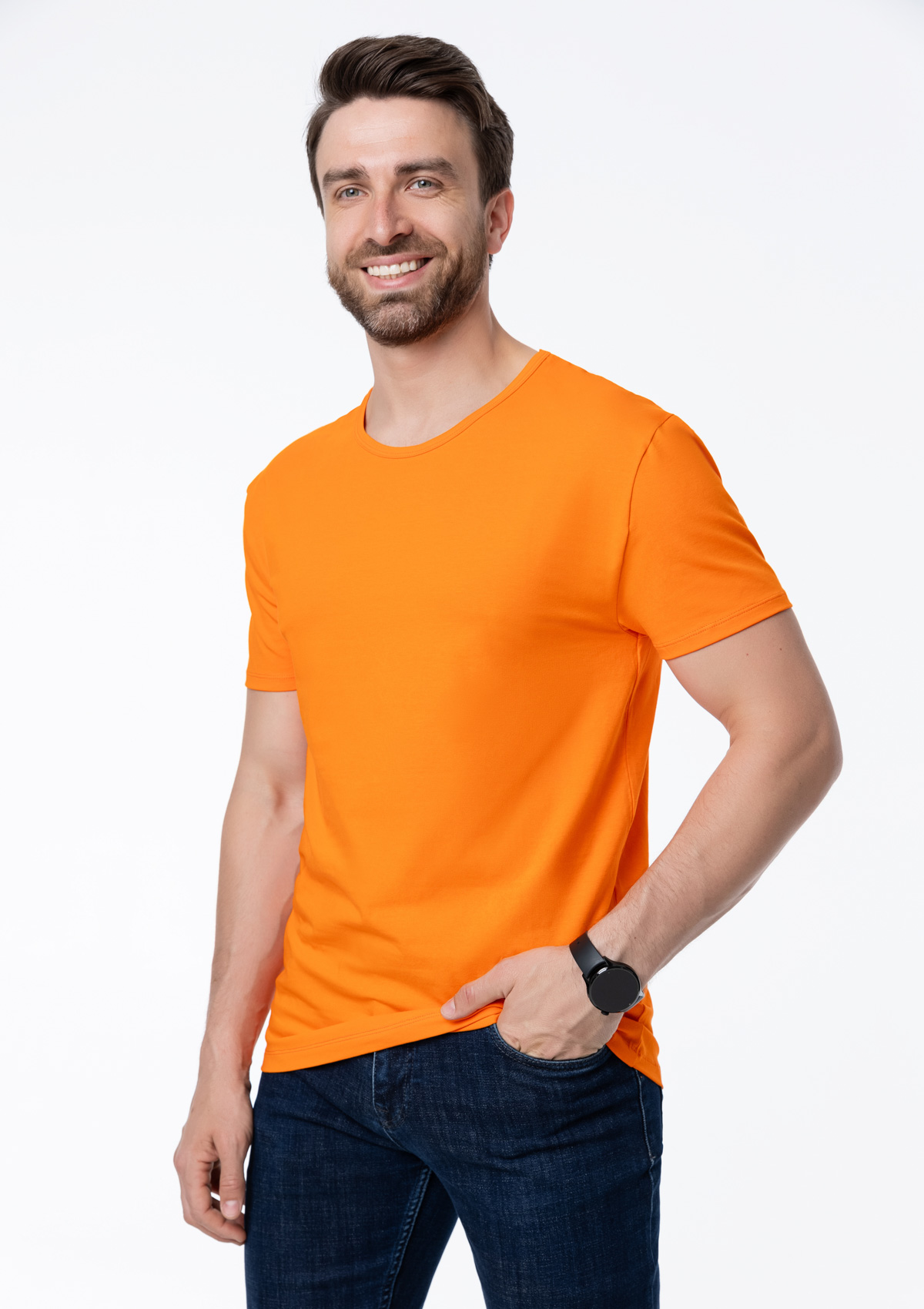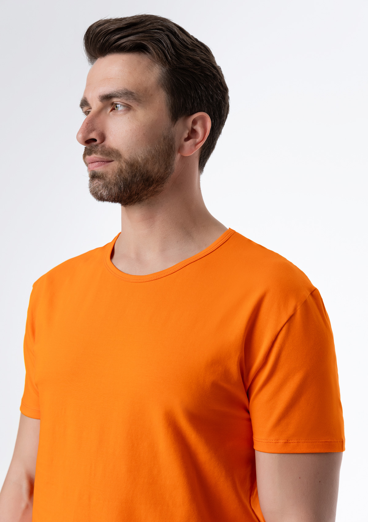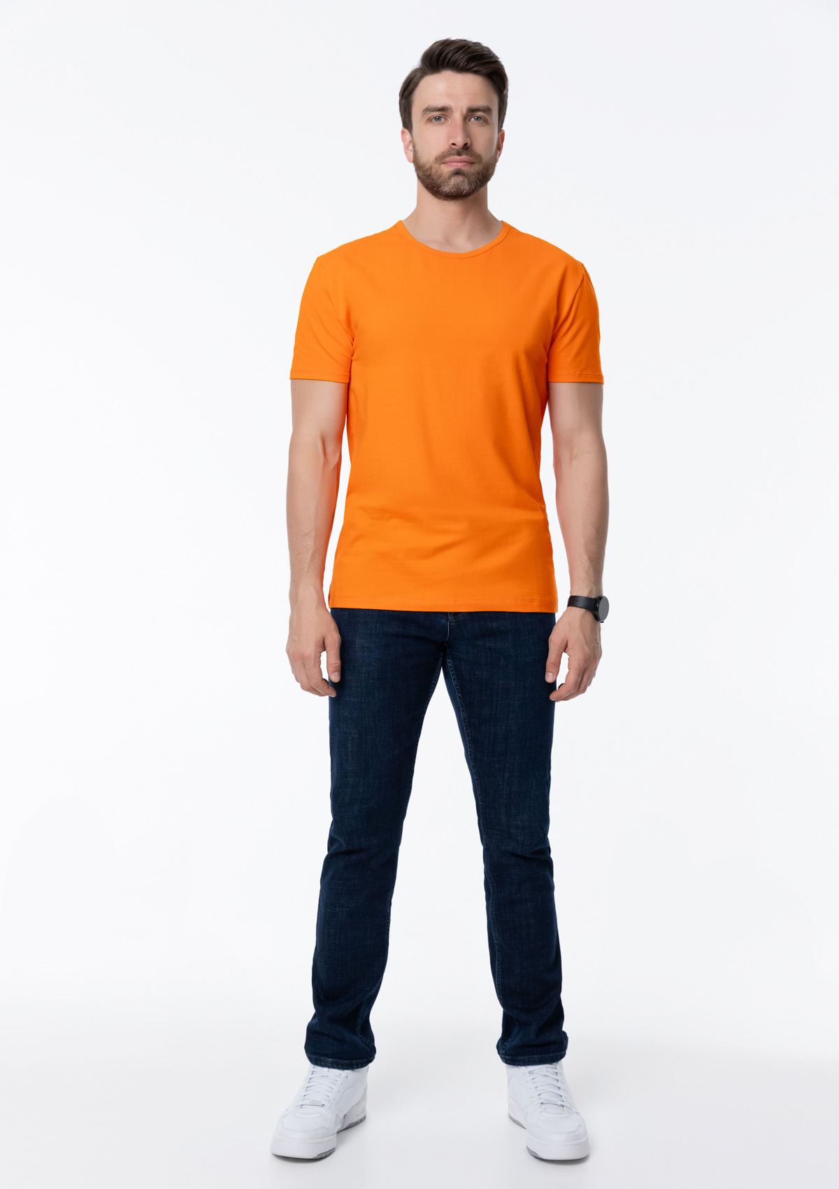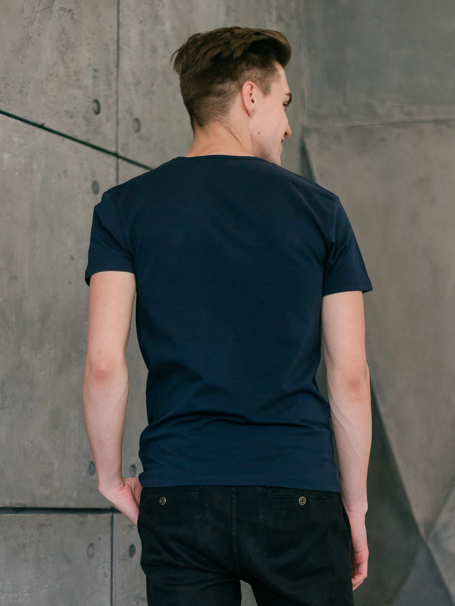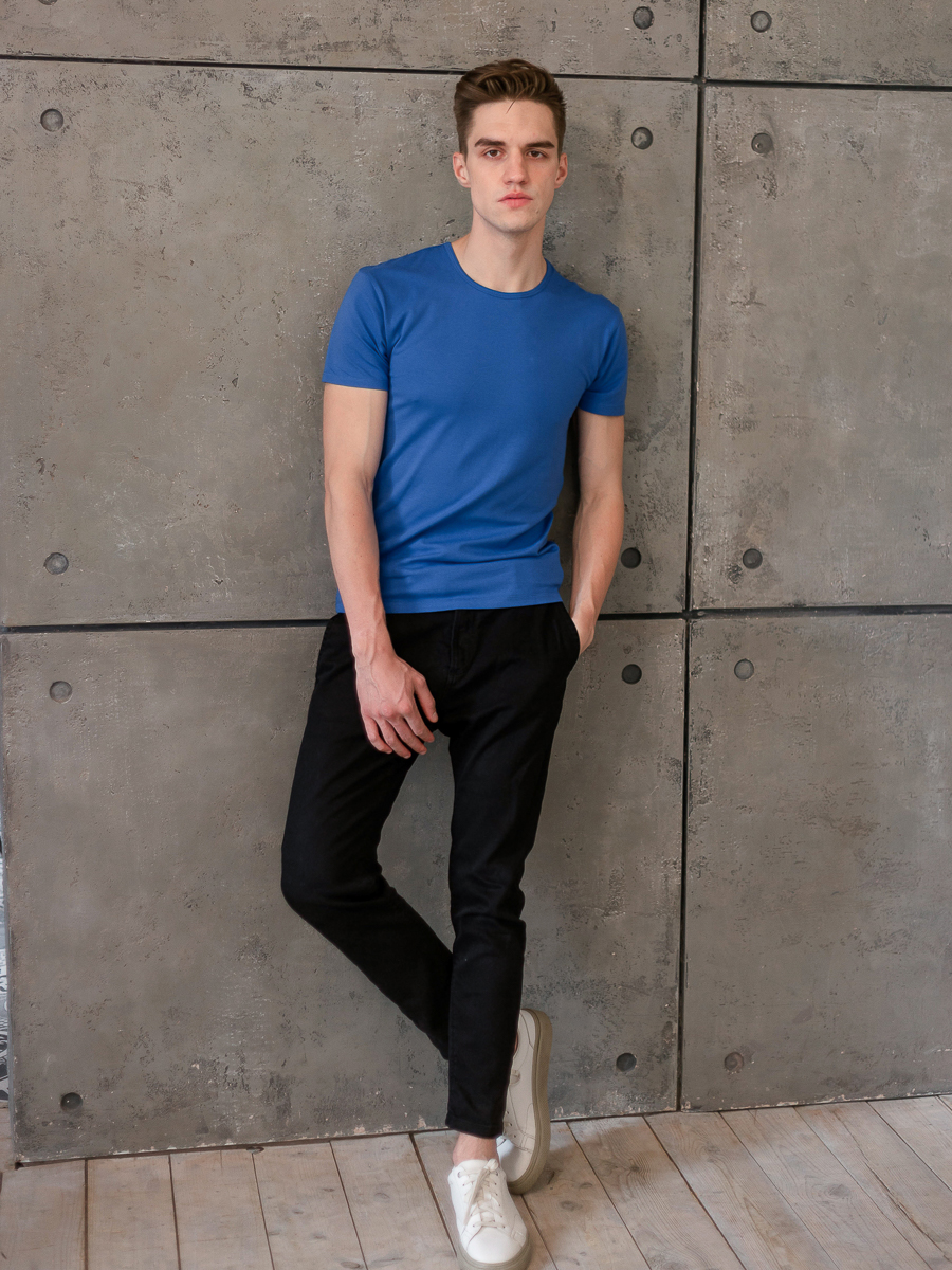 Мужская футболка облегающего силуэта с округлым вырезом и втачным рукавом.