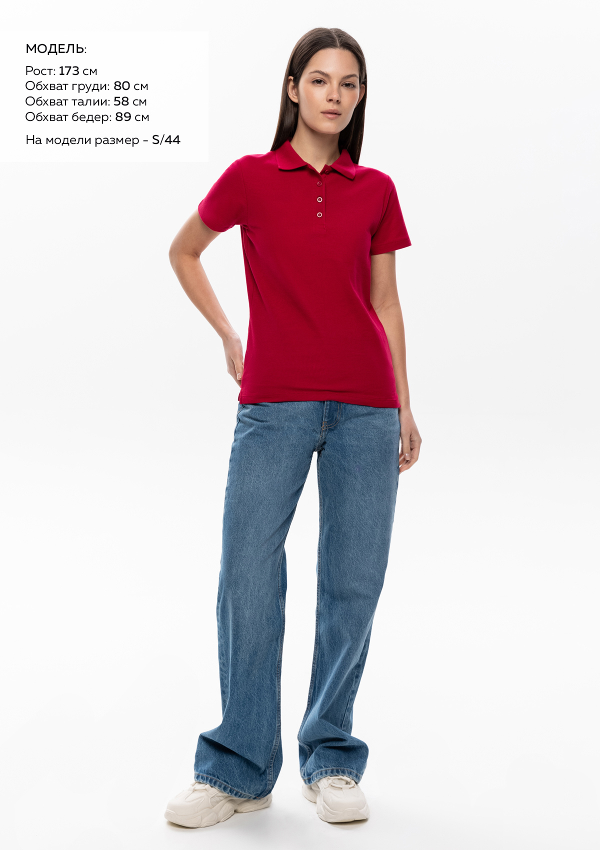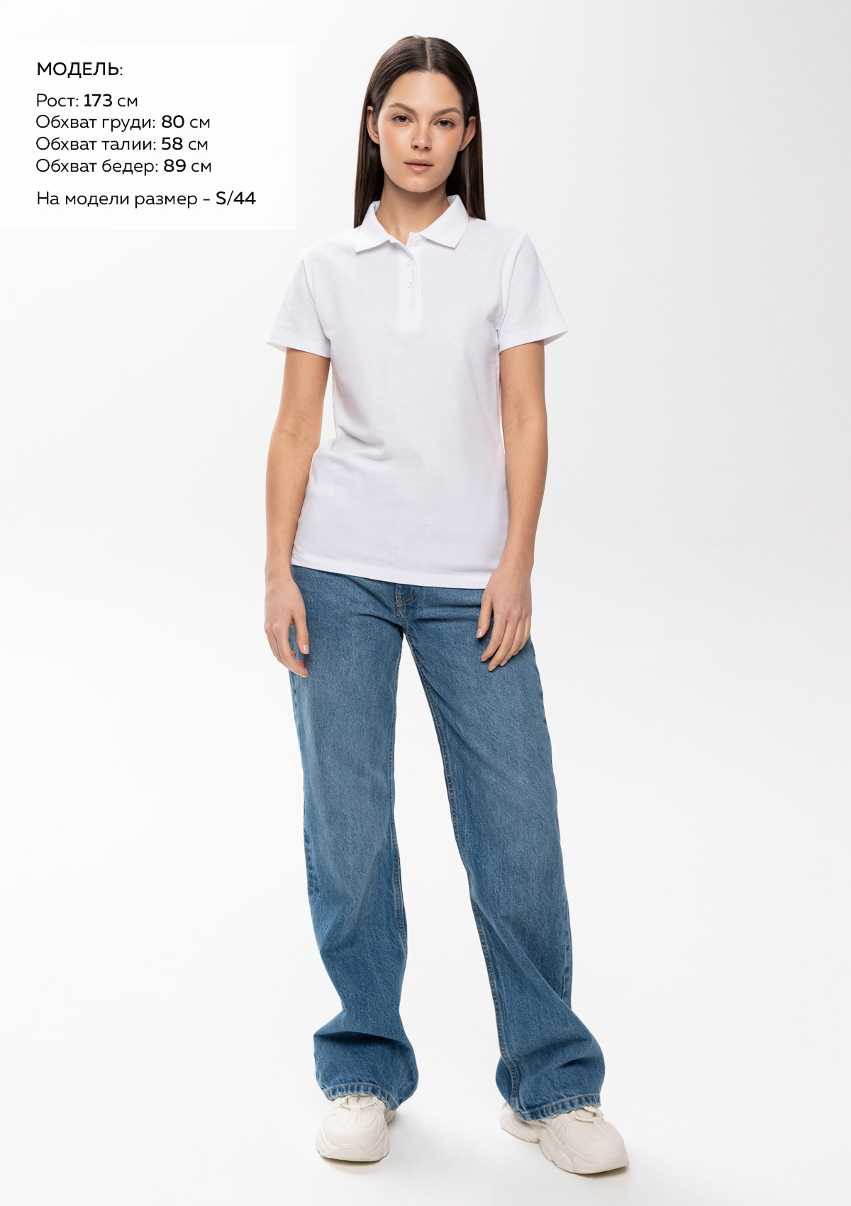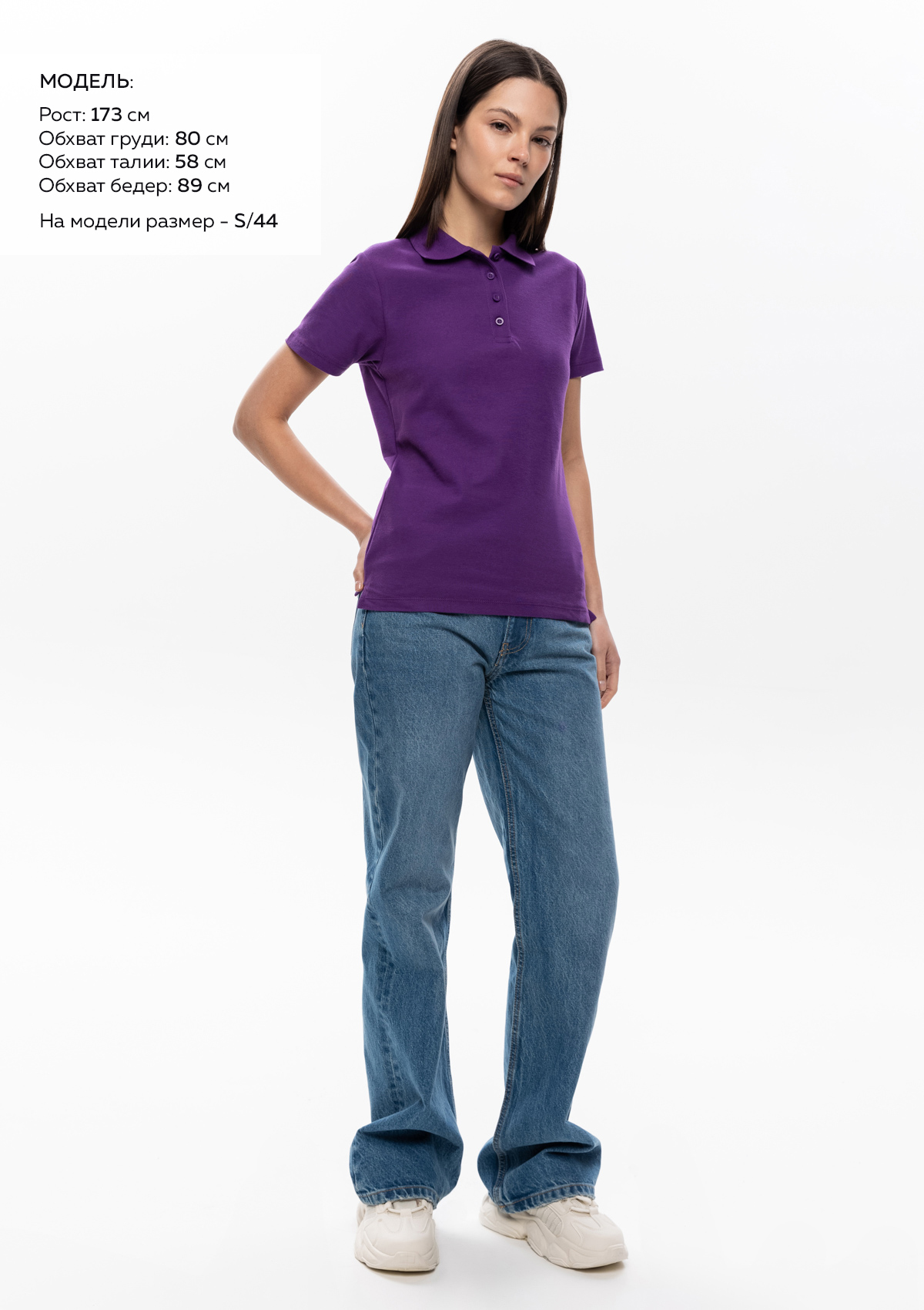 Размер на модели: S/44. Параметры модели: рост 173 см.; обхват груди 80 см.; обхват талии 58 см.; обхват бедер 89 см.