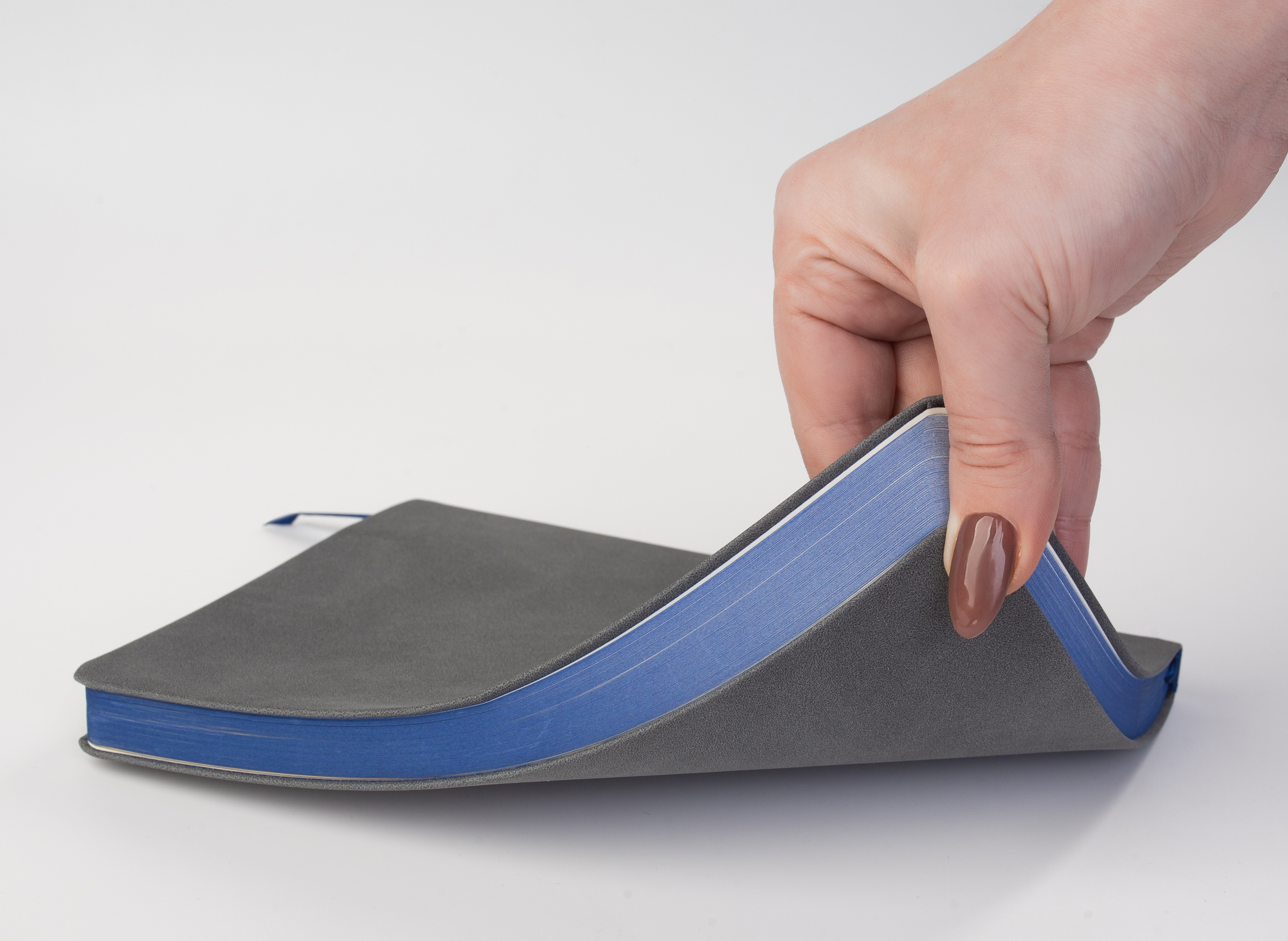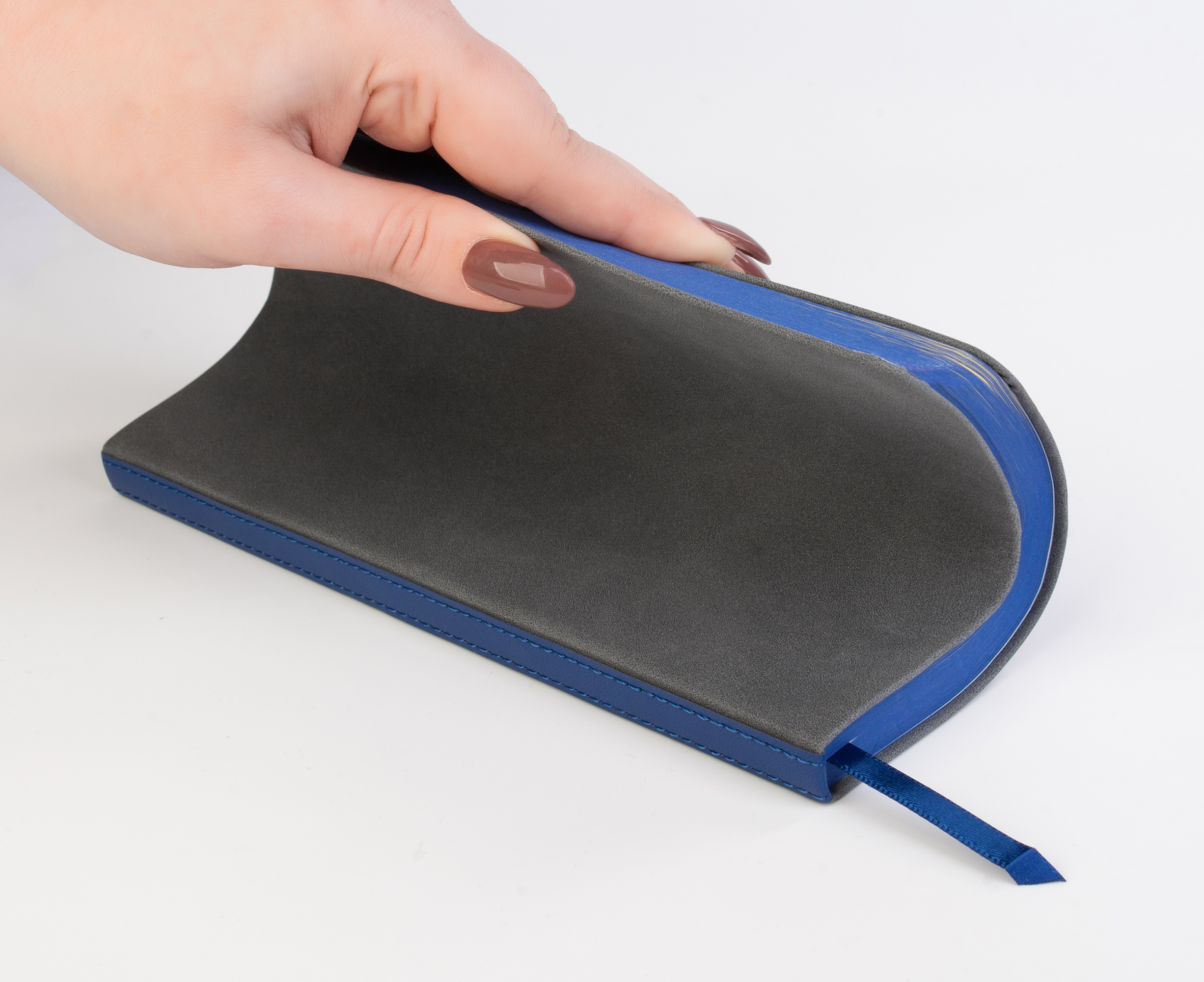 Основной материал напоминает велюр, с характерной тактильностью и гибкостью, такой ежедневник не хочется выпускать из рук.