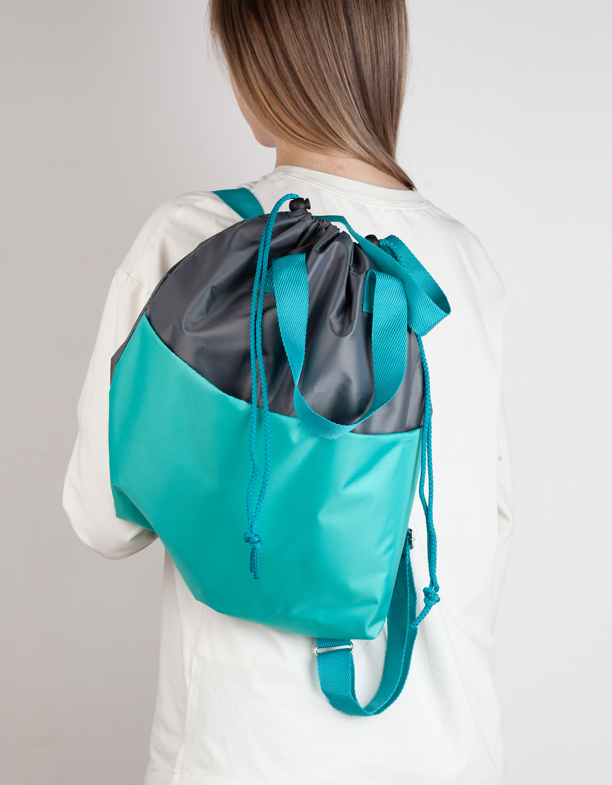 Вместительный передний карман на липучке для быстрого доступа к мелким аксессуарам. Основное отделение на шнурке с аксельбантами (стопперы, фиксаторы) для быстрого закрытия.