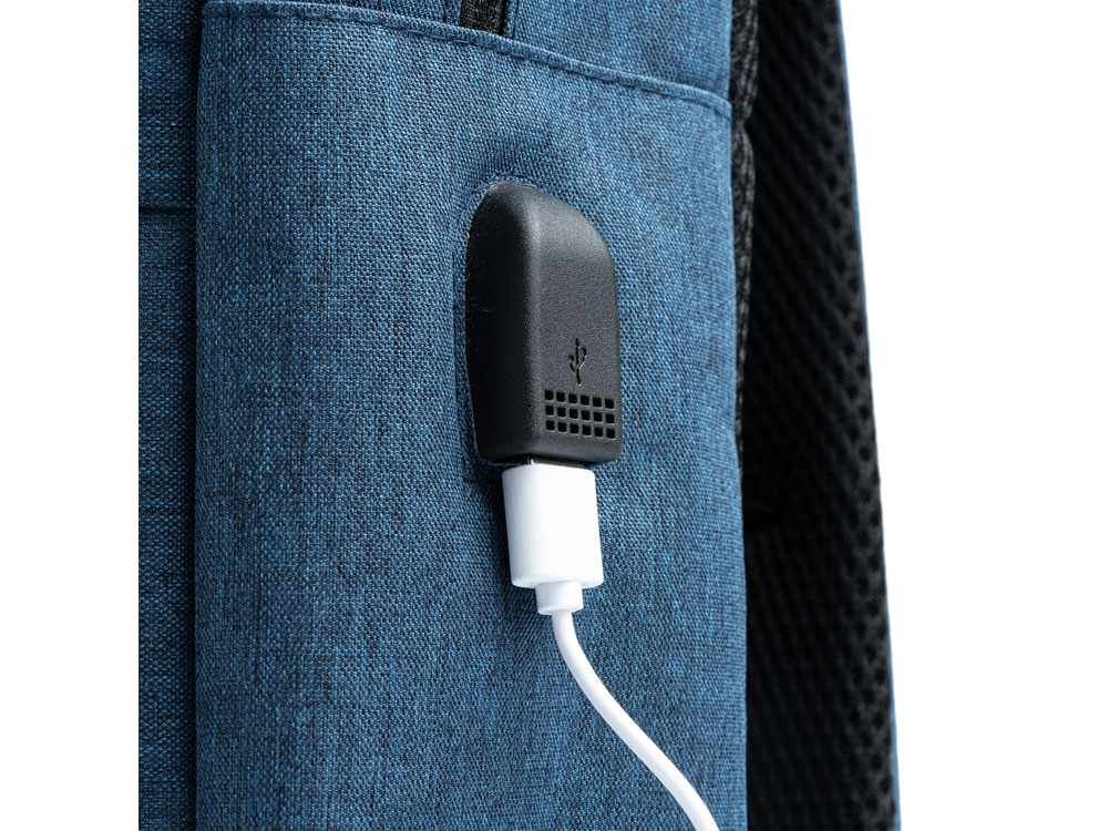 Рюкзак из переработанного полиэстера RPET 600D с эффектным дизайном. Мягкое основное отделение идеально подходит для ноутбука или планшета. Выход USB для подключения повербанка (не входит в комплект). Передний и боковой карман. Мягкие лямки и спинка.