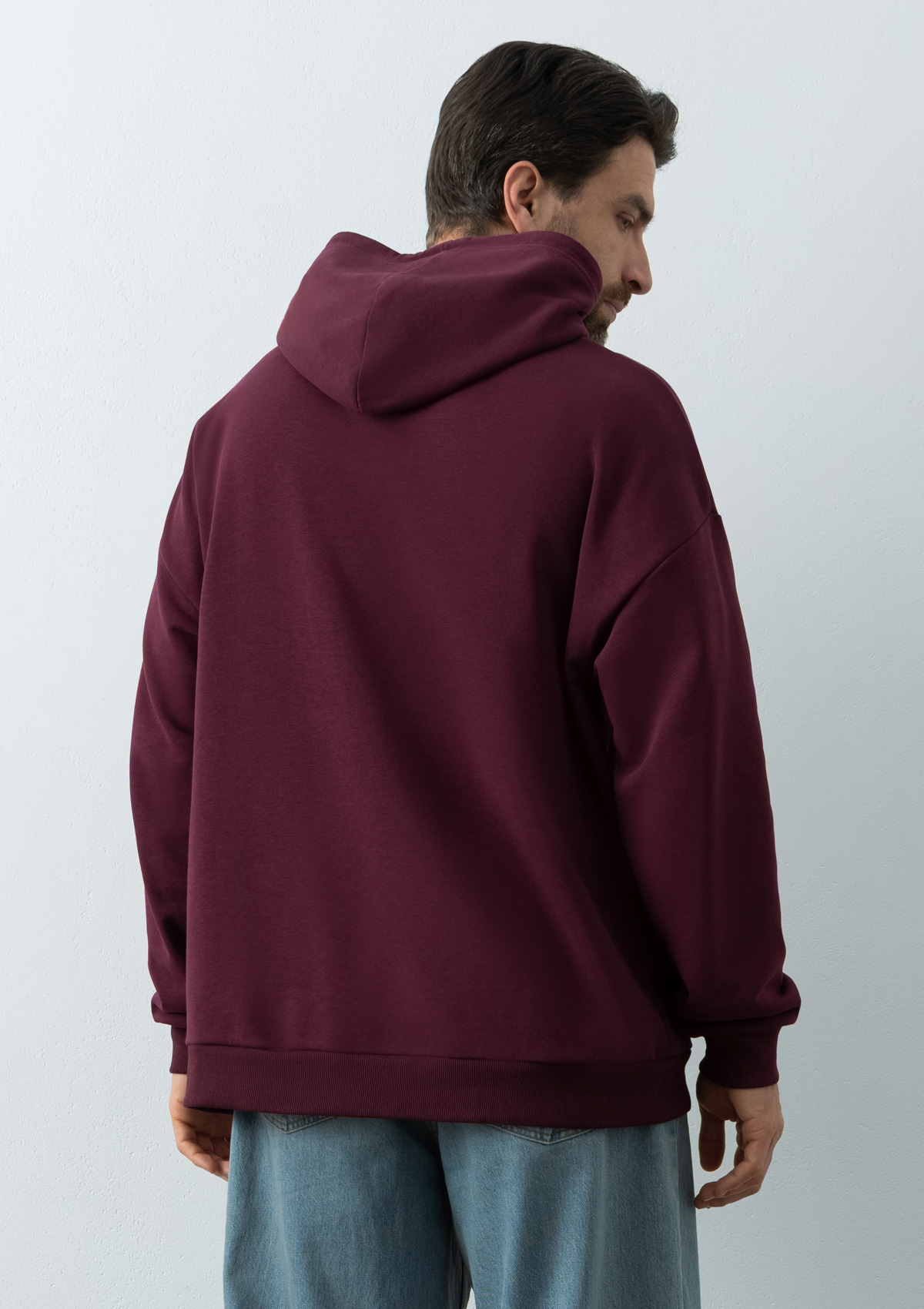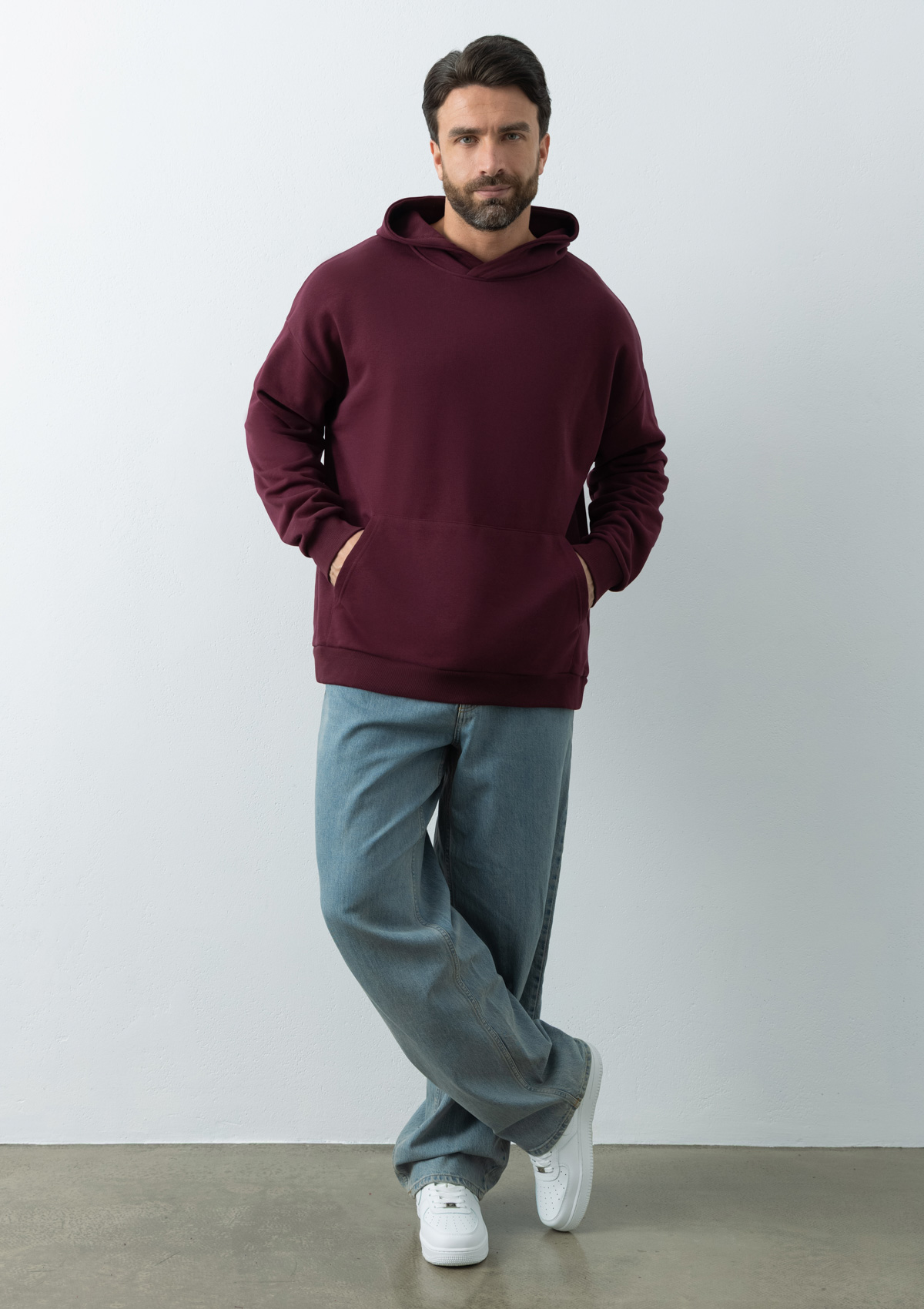 Универсальная толстовка свободного силуэта с капюшоном комфортной глубины, спущенной линией плеча и глубоким карманом-кенгуру. Манжет и низ изделия оформлены широкой эластичной резинкой.