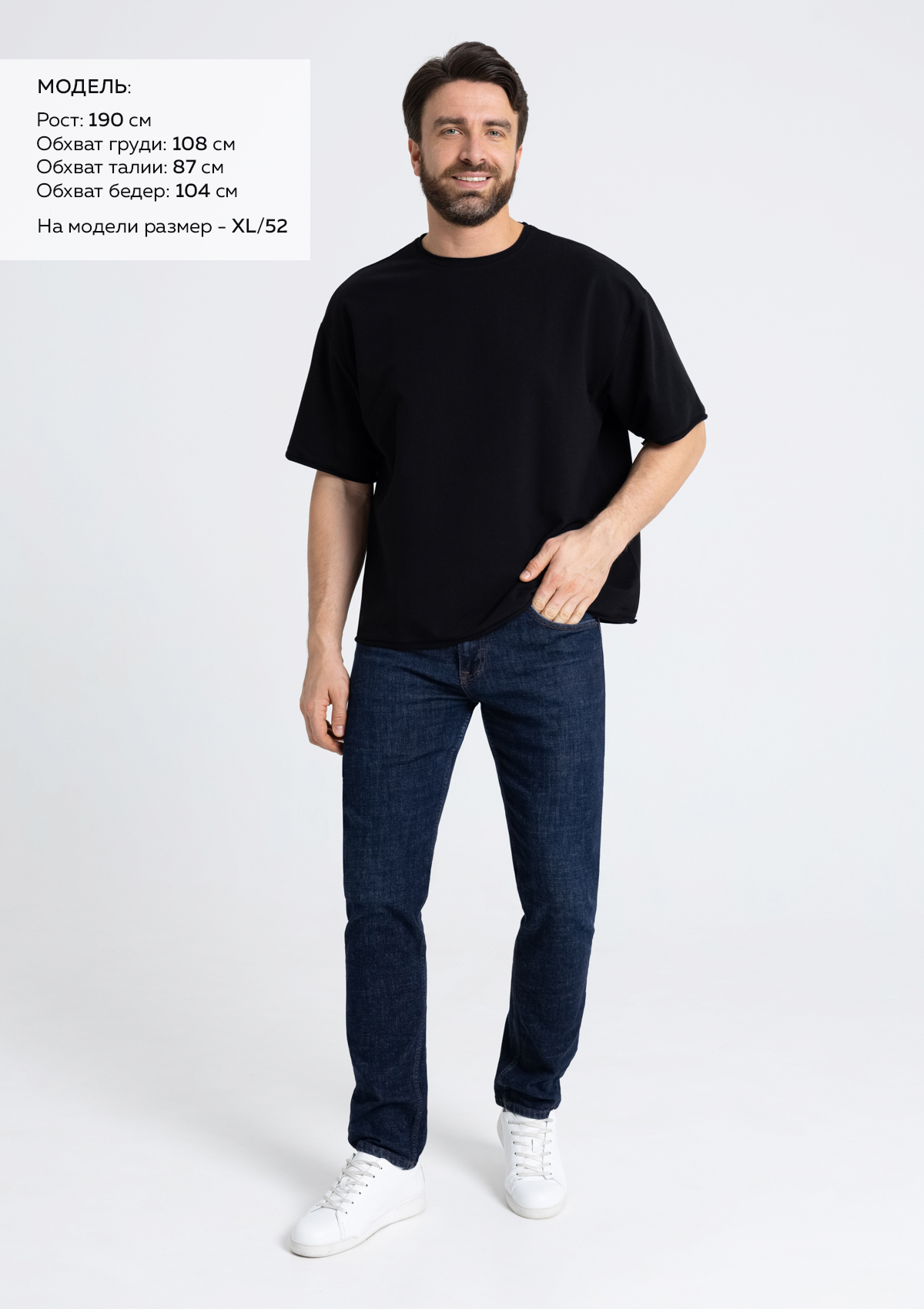 Размер мужской футболки: XL/52. Параметры модели: рост 190 см.; обхват груди 108 см.; обхват талии 87 см.; обхват бедер 104 см.