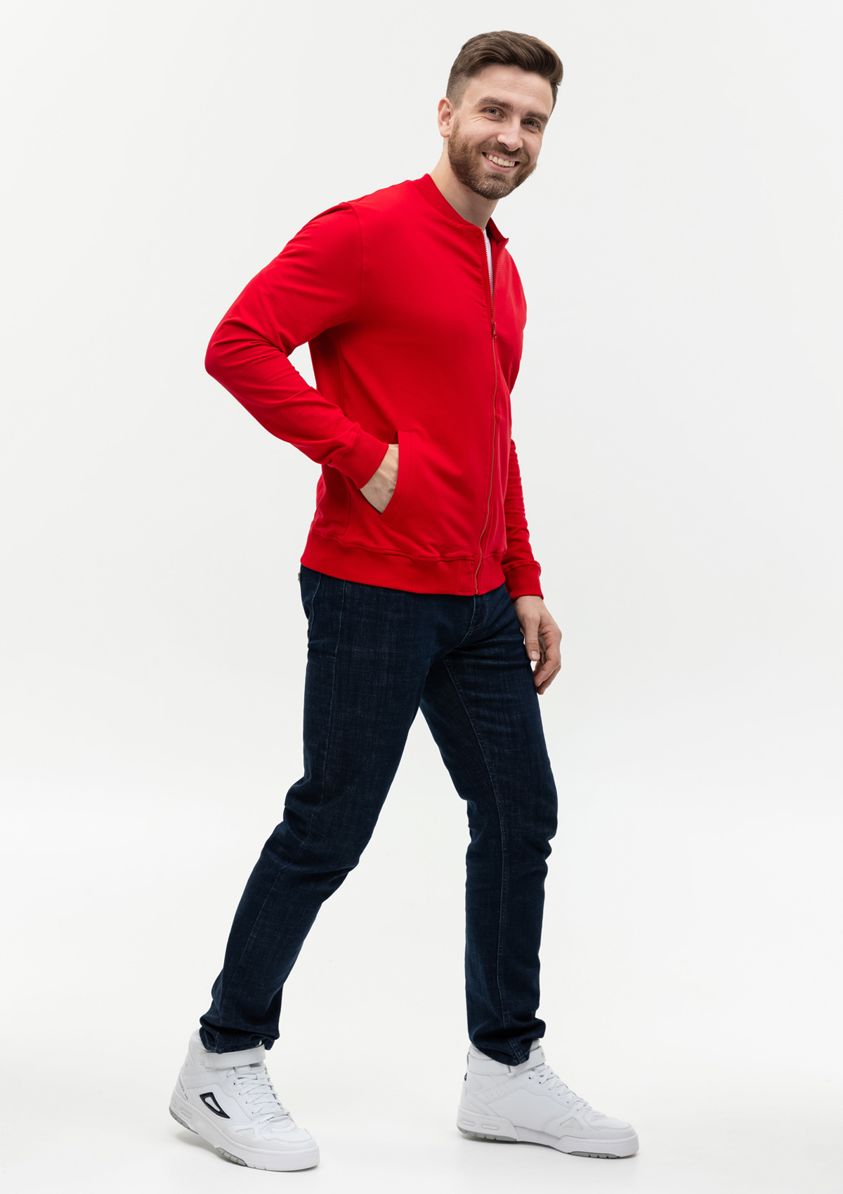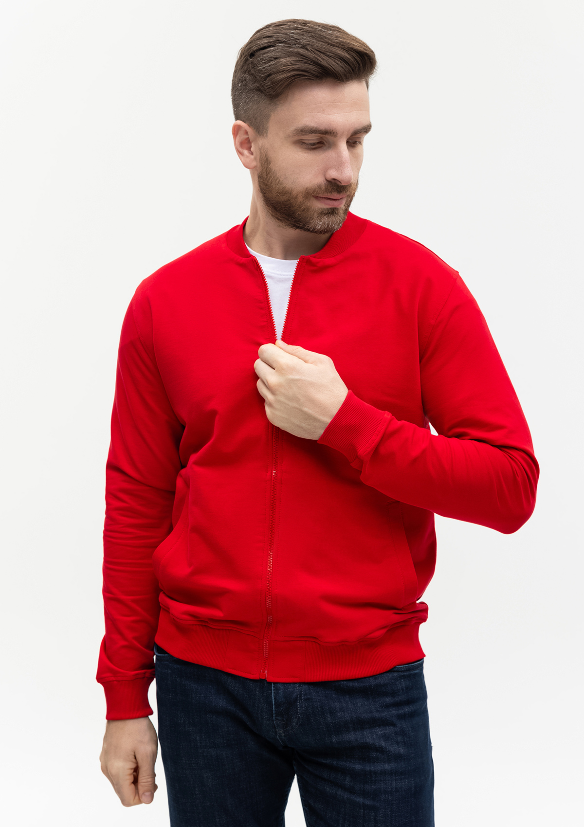 Универсальная олимпийка прямого силуэта с воротником-стойкой, втачным рукавом, прорезным карманом комфортной глубины и застежкой на молнию. Манжет и низ изделия оформлены широкой эластичной резинкой в тон основному цвету. Модель подходит как для мужчин, так и для женщин.