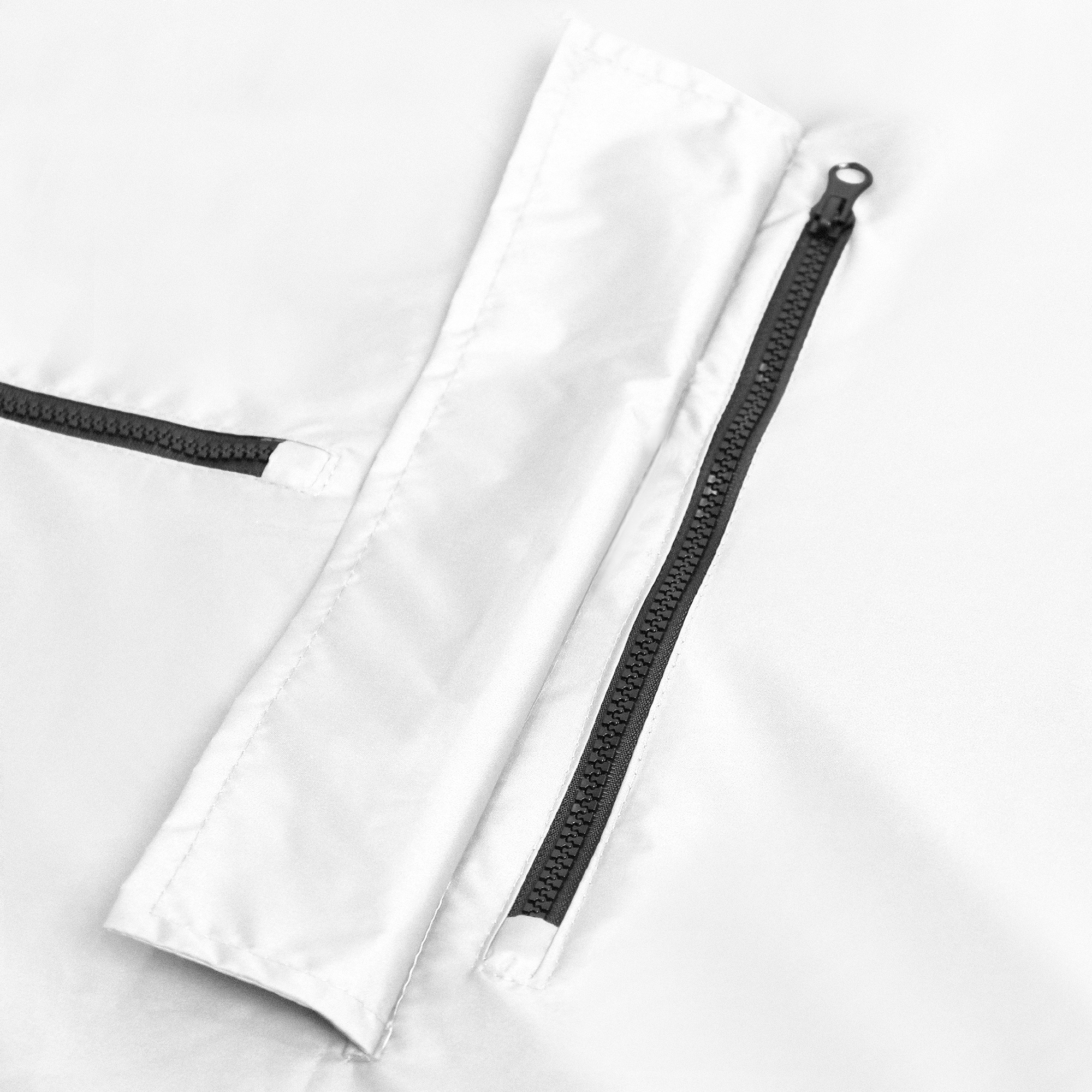 Цельнокроеный дождевик прямого силуэта со спущенным плечом, застежкой на молнию и глубоким прорезным карманом. Для дополнительной защиты от ветра и дождя капюшон дополнен кулисой с резинкой на фиксаторе, а манжет рукава укреплен эластичной резинкой.